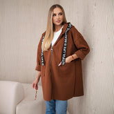 Hooded Sports Women's Large Size Long Sleeve Zipper Woolen Coat