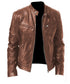 Men's Zip Cardigan PU Leather Jacket With Stand Collar