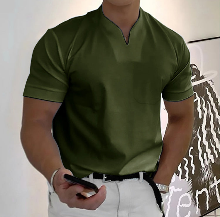 Summer Short Sleeve Shirt Men Fitness Plus Size Sports T-Shirt Elastic Cotton Pocket